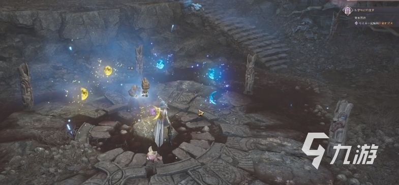 在游戲的設定中,該任務一共有四個不同階段,前面兩個是破解咒術,方法上還是比較簡單的,就是跟著克萊對話,然后和柱子交互就可以了,到時候會出現(xiàn)殘月,直到成為滿月就可以了。