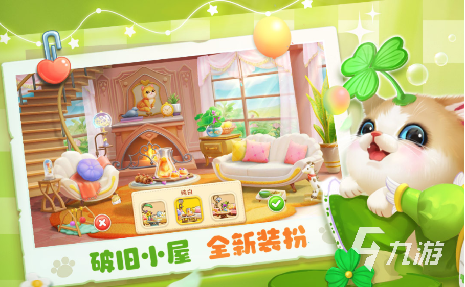 在游戲中玩家能夠體驗(yàn)到兩種類型,一種是風(fēng)靡全球的消除模式,非常簡單解壓,另外一種就是在游戲中養(yǎng)成一只小貓,把原本破舊的房屋打造成溫暖的家,在這里和這只小貓?bào)w驗(yàn)歡樂又溫馨的日常,喜歡貓的玩家可以來游戲中進(jìn)行裝扮,感受小貓身上高度自由的服裝搭配。