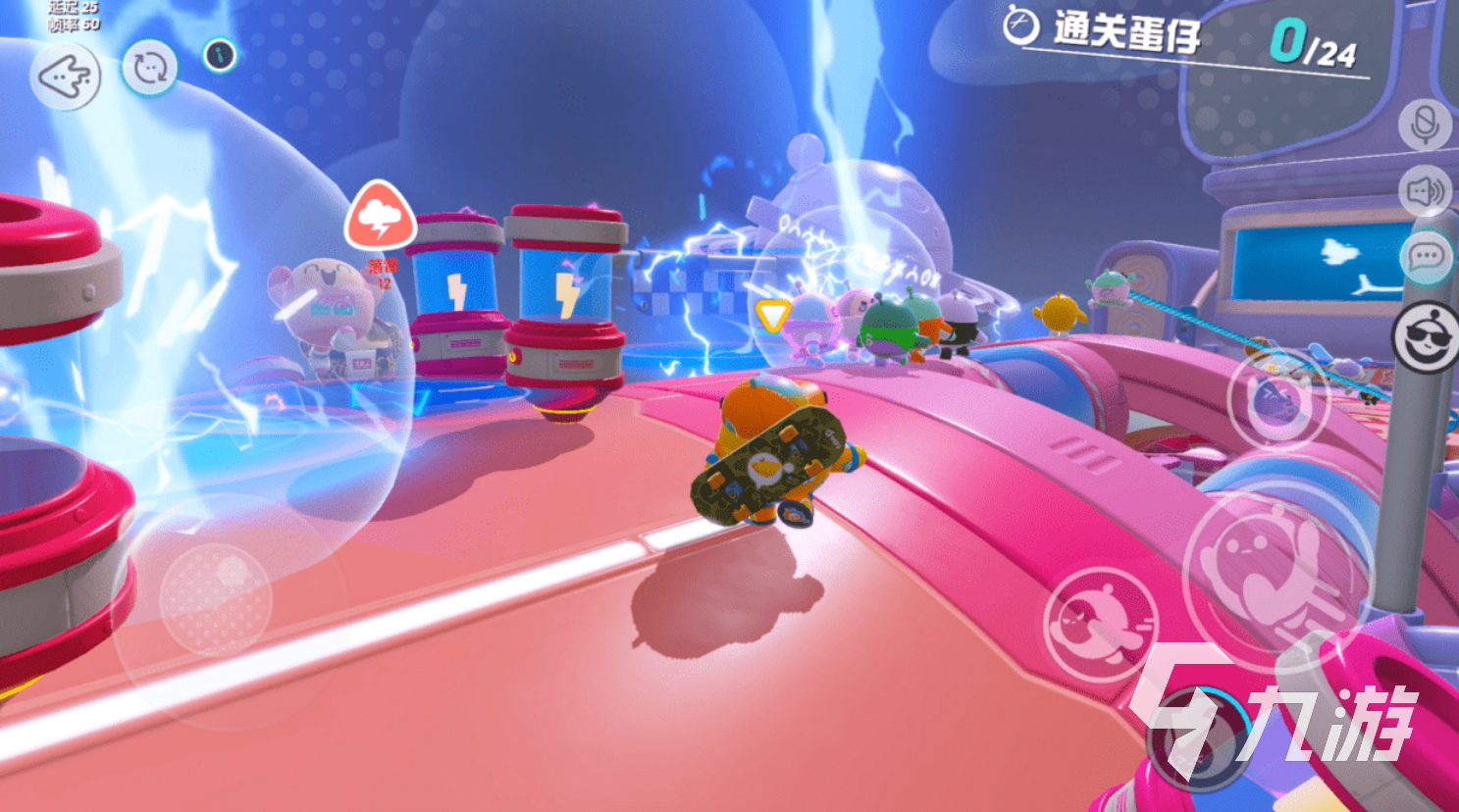 玩家的目標(biāo)是通過各種障礙、賽道和機(jī)關(guān),沖刺并沖過終點(diǎn)線,生存下來并在競爭中勝出。每一輪比賽會(huì)有大量玩家同時(shí)參與,從開始到結(jié)束都充滿混亂和緊張,但只有少數(shù)幸運(yùn)者能夠晉級(jí)到下一輪。比賽的設(shè)計(jì)充滿創(chuàng)意,讓玩家面對(duì)各種不同的難題,例如跳躍、爬墻、躲避滾動(dòng)的巨石和旋轉(zhuǎn)的平臺(tái)等。同時(shí),游戲中還加入了一些有趣的元素,比如推行其他玩家,搶奪物品,或者扔掉其他蛋仔,增加了游戲的互動(dòng)性和趣味性。