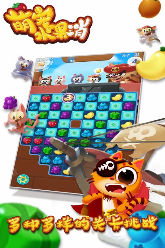 在這款游戲中,你將與可愛的萌寵們一同探索一個五彩斑斕的水果世界。游戲的故事背景發(fā)生在一個遙遠的大陸上,船長貓和水手貓們?yōu)榱藢ふ沂澄锒ど厦半U之旅。他們將遭遇各種有趣的關卡和挑戰(zhàn),需要你的智慧和技巧來幫助他們過關斬將。游戲還提供了多種時尚Q萌的時裝供你選擇。你可以為自己的萌寵換上各式各樣的裝扮。同時,游戲中的寵物系統(tǒng)也充滿樂趣,你可以通過消除水果來喂養(yǎng)寵物,讓它們茁壯成長,與你并肩作戰(zhàn)。
