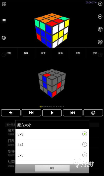 《益智魔方》是一款模擬魔方的益智游戲,游戲里面主要分為普通模式和計(jì)時(shí)模式這兩大類,游戲中有這一款十分逼真的魔方模型,整體游戲畫面精致,操作比較簡單方便。玩家只需要輕輕的滑動模擬魔方,就可以對魔方進(jìn)行旋轉(zhuǎn)和翻轉(zhuǎn)??梢赃x擇不同類型的模仿,有3X3,4X4和5X5這幾款可以選擇,數(shù)字越大的玩起來越復(fù)雜。初學(xué)者也不用擔(dān)心,里面包含了很多解決魔方難題的示例教程,可以通過觀看了解技巧從而學(xué)會如何玩魔方。