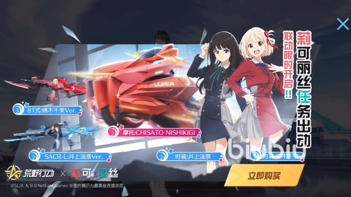 這次荒野聯(lián)動,選擇了很多人都比較喜歡的日漫莉可麗絲,看似柔弱的兩個女生會在這個游戲里拿起槍械不斷擊殺對手,這種設(shè)定對于玩家來說是很新穎的,除了莉可麗絲和井上奈龍這兩個經(jīng)典的角色之外,里面含有大量的聯(lián)動服裝,即使不使用這兩個角色也能更換上這些聯(lián)動服裝,獲取一種全新的對戰(zhàn)體驗(yàn),游戲里還會有駕駛更加炫酷并且有安全感的摩托車,不管是場景里快速移動還是參與追捕任務(wù)都非常合適。
