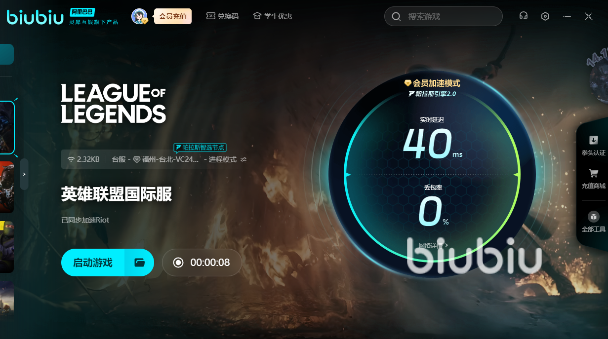 平常大家玩膩了lol國服后,就想要進入臺服玩一下。那么lol玩臺服需要加速器嗎?由于臺服也屬于國際服中的一個服務(wù)器,所以為了突破網(wǎng)絡(luò)桎梏。大家就必須要用上biubiu,如此才能暢快提速,讓你能夠與臺灣的網(wǎng)友們一起在lol的世界中一較高下。并獲得更好的游戲體驗,避免卡得動彈不得。