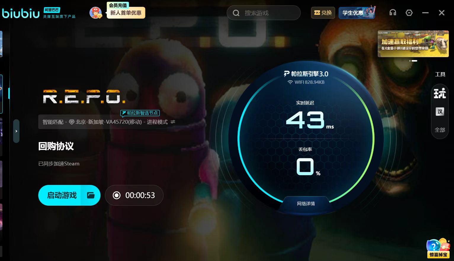 新玩家更能輕松收獲超值啟動福利,注冊biubiu賬號后,系統(tǒng)即自動贈送24小時免費全平臺加速時長,而輸入專屬福利【biubiu不掉線】,即可額外再領(lǐng)加速權(quán)益72小時,兩者疊加輕松獲得長達96小時的免費優(yōu)化體驗,全程助力REPO流暢下載。