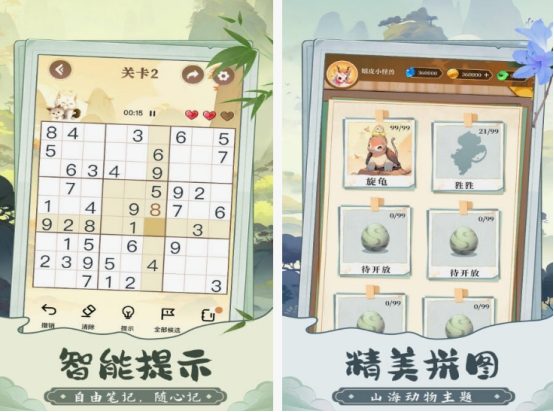 不僅這是與數(shù)獨(dú)玩法有關(guān),考驗(yàn)玩家邏輯推理能力,同時也要很好地進(jìn)行觀察,才可完成任務(wù)的,同時還有上百個關(guān)卡。需要玩家在玩的時候,根據(jù)不同的難度,保證每一行每一列的數(shù)字只會出現(xiàn)一次,這樣就可完成相應(yīng)的挑戰(zhàn)。有超多精美的地圖,里面涵蓋了超多山海經(jīng)的動物主題,只有發(fā)揮自己的最強(qiáng)腦洞,就可完成趣味闖關(guān)的任務(wù)。