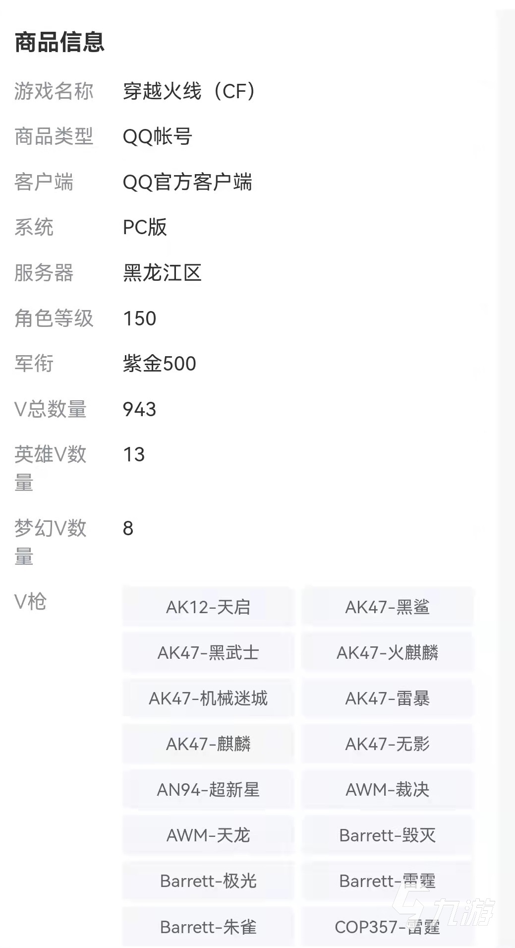 對于cf賬號來說,最有價值的部分就是VIP等級和帶V的槍械,以及人物角色的數(shù)量。所以我們在購買賬號的時候,一定要重點看這幾個方面。在交易貓游戲賬號交易平臺中,為我們在篩選中直接提供了這些選項。我們可以直接輸入需要的VIP最低等級和最高等級區(qū)間,以及自己想要的帶V的槍械,還有人物,這樣篩選出來的就是最符合我們要求的賬號。