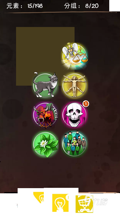 這是一款以元素合成與毀滅為主題的益智解謎游戲。玩家將扮演一位顛覆秩序的惡魔,通過將不同元素兩兩組合,逐步解鎖并創(chuàng)造出一個(gè)充滿邪惡與混亂的世界。游戲初始提供基礎(chǔ)元素,如空氣、火、水等,玩家需通過直覺點(diǎn)擊與邏輯推理,將元素進(jìn)行融合。例如,將人類與蘋果結(jié)合可生成罪惡與知識(shí),象征著原罪的誕生;將火焰與房屋結(jié)合則可能引發(fā)火災(zāi),生成灰燼。
