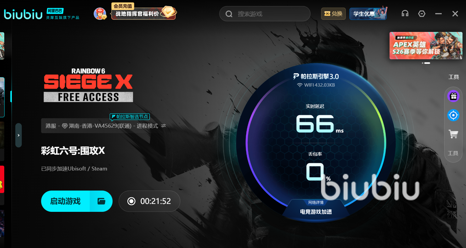 作為強(qiáng)聯(lián)網(wǎng)對(duì)戰(zhàn)的游戲,彩虹六號(hào)圍攻對(duì)網(wǎng)絡(luò)連接質(zhì)量極其敏感,特別是在全球或本地高峰時(shí)段,服務(wù)器負(fù)載激增常導(dǎo)致響應(yīng)延遲和瞬時(shí)卡頓。此時(shí),biubiu加速器絕對(duì)是最佳選擇,通過(guò)智能路由選擇,支持多條線路發(fā)包,有效避免網(wǎng)絡(luò)擁堵。此外,它專門研究的弱網(wǎng)環(huán)境對(duì)抗技術(shù)能夠顯著提高數(shù)據(jù)包傳輸?shù)姆€(wěn)定性,抵抗丟包和高延遲,使槍戰(zhàn)操作更加流暢,勝負(fù)不再受到網(wǎng)絡(luò)影響。