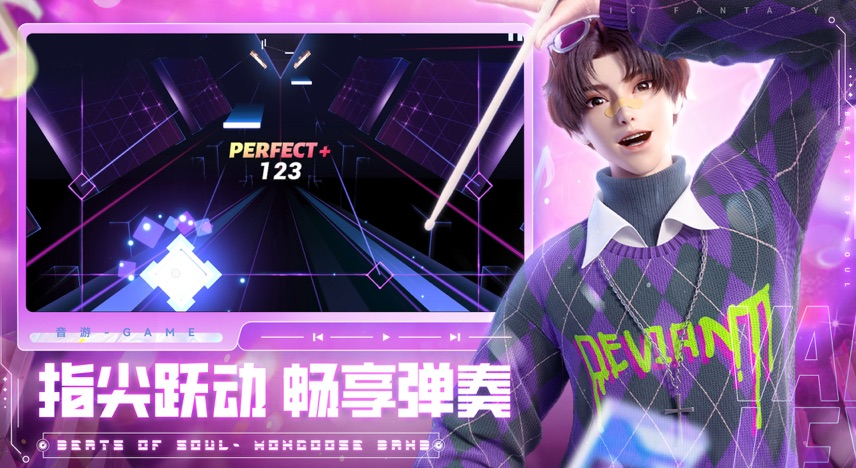 完全免費(fèi)的節(jié)奏音游,里面有多種音樂字符,玩的時(shí)候屏幕中間會(huì)有一條分界線,這些音符出現(xiàn)后,會(huì)慢慢往分界線移動(dòng)。每當(dāng)音符穿過分界線時(shí),就是玩家該點(diǎn)擊的時(shí)候,點(diǎn)擊的音符數(shù)量越多,得到的分?jǐn)?shù)也越高。游戲里音符出現(xiàn)的快慢,是跟著歌曲節(jié)奏走的,剛接觸這款游戲的玩家,建議先選一些節(jié)奏慢的歌,熟悉一下游戲的玩法。