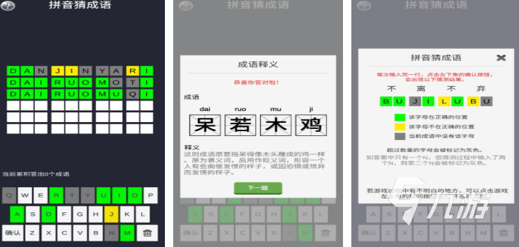 拼音猜詞語的玩法特別考驗玩家對拼音的熟悉程度,核心就是根據(jù)給出的拼音線索,把對應(yīng)的詞語拼出來,為了幫玩家找到正確方向,游戲會用不同顏色做提示,每次玩家輸入拼音后,對的部分就會標上特定顏色,錯的就保持原樣,這樣就能一步步縮小范圍。