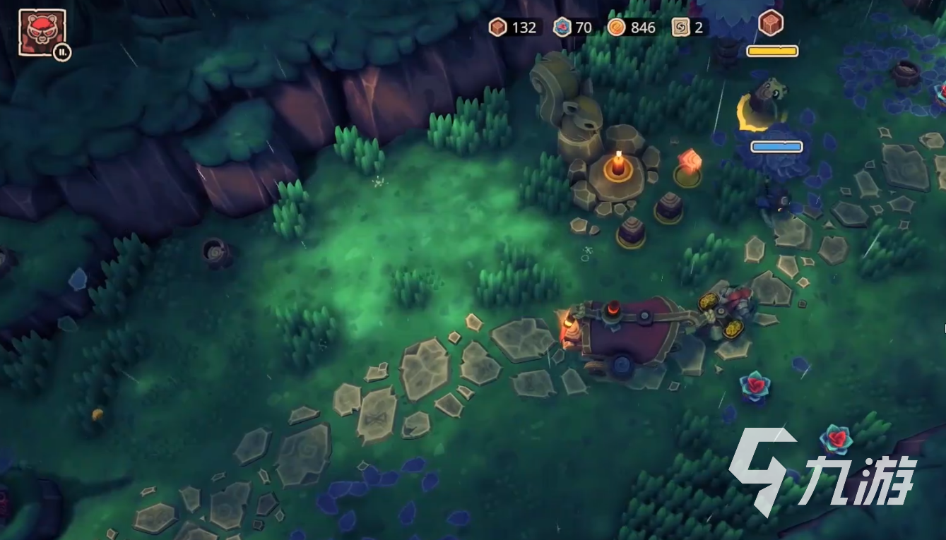 在游戲中,玩家們分別扮演小貓,不論是白天與黑夜,都要在森林里面穿梭。在白天,需要收集植物木材解開神龕,其中圖騰就是各種有增益的效果道具,比如可以讓小貓攻速加快、傷害提升等。玩家可以把圖騰放置在羅茜身上,這樣即使耗盡能量,也不會摧毀掉圖騰。