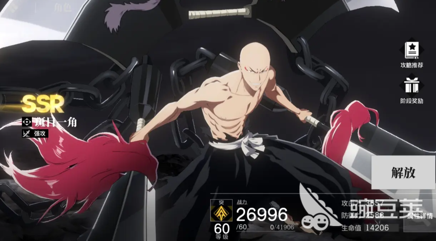 來自十一番隊的斑目一角以高爆發(fā)近戰(zhàn)著稱。其被動技能可在周圍存在敵方單位時,逐層提升突襲傷害,最多疊加至15%。戰(zhàn)技施展時如閃電般突進至敵人背后,展開迅猛連擊;若處于卍解狀態(tài)下使用,則會躍起發(fā)動強力下劈,落地后再次點擊可追加攻擊并施加“創(chuàng)痕”效果——該狀態(tài)能使下一次攻擊造成更高額的爆發(fā)傷害。