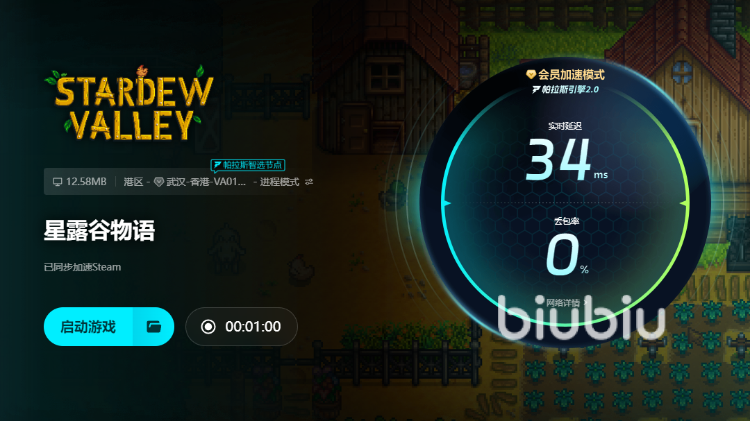 biubiu的加速性能和連接質(zhì)量,成為了許多玩家的首選。作為一款專門為游戲優(yōu)化的加速器,biubiu能確保玩家在《星露谷物語》的世界里能夠流暢進行種植、釣魚、探險等各類活動。對于掉幀問題,biubiu加速器可以通過智能加速模式減少網(wǎng)絡(luò)波動對游戲畫面的影響,讓游戲畫面始終保持平穩(wěn),避免因網(wǎng)絡(luò)卡頓而出現(xiàn)的掉幀現(xiàn)象。特別是在玩家進入礦洞、城鎮(zhèn)或切換季節(jié)等需要大量數(shù)據(jù)加載的場景時,biubiu加速器可以確保游戲的流暢運行,讓玩家不再受到掉幀的困擾。
