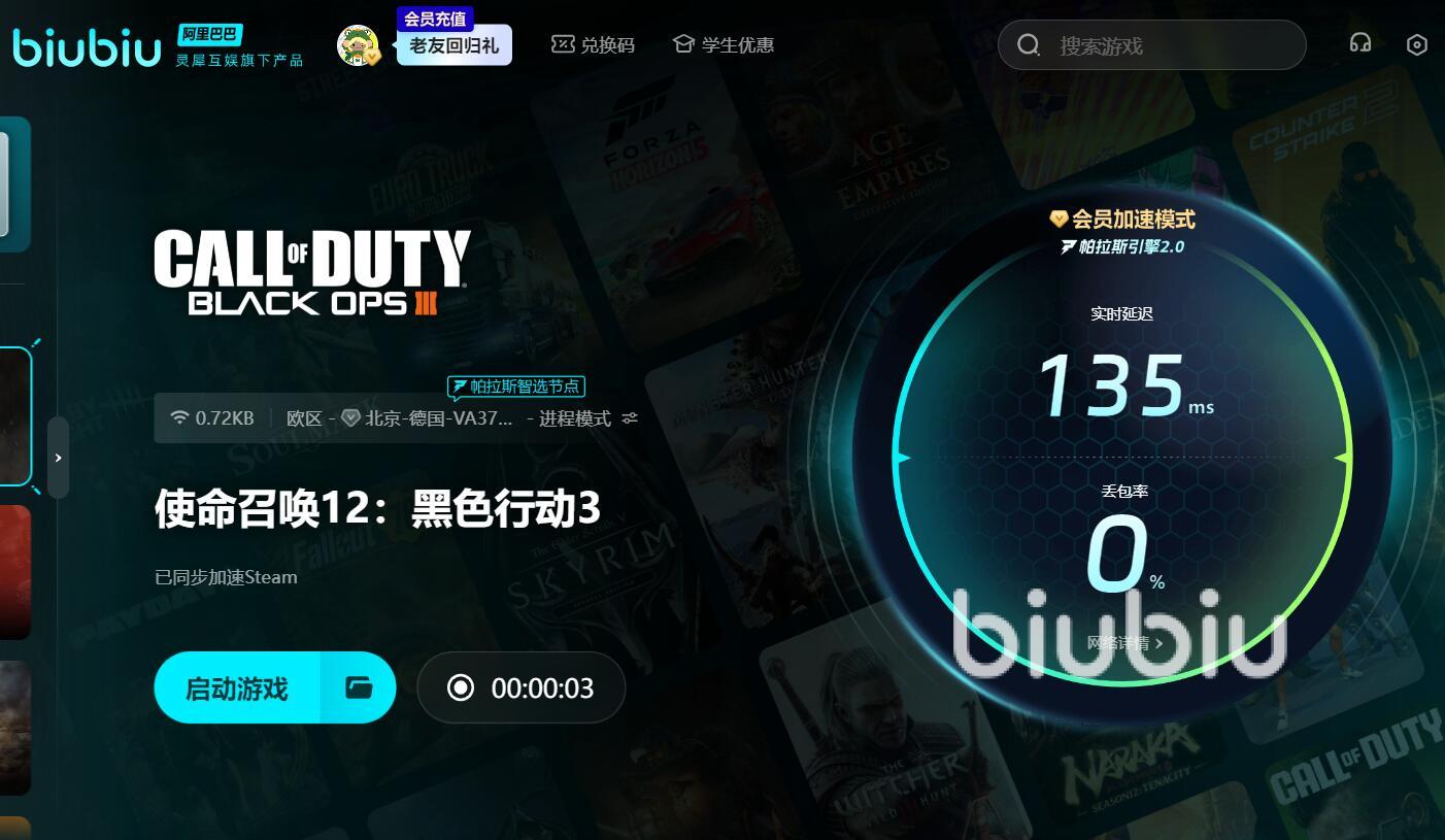 為了增強(qiáng)作品的競(jìng)技性,制作團(tuán)隊(duì)在本作中引入了許多有意思的聯(lián)機(jī)模式,比如占領(lǐng)、奪旗、團(tuán)隊(duì)死亡賽等等,在參與這些線上模式時(shí),大家要是不想遇到卡頓,那么可以先啟動(dòng)biubiu加速器內(nèi)的加速服務(wù),其中的帕拉斯引擎會(huì)實(shí)時(shí)分析你的網(wǎng)絡(luò)數(shù)據(jù),并根據(jù)實(shí)際情況匹配高速的網(wǎng)絡(luò)通道,確保你在游玩時(shí),能擁有一個(gè)流暢的體驗(yàn)。為了回饋用戶,平臺(tái)近期還上線了許多福利,對(duì)于初次使用該軟件的用戶,平臺(tái)會(huì)贈(zèng)送3小時(shí)的試用時(shí)長(zhǎng),接著你就能體驗(yàn)其中的各項(xiàng)功能,要是3小時(shí)試用你感覺(jué)不夠,輸入兌換碼【biubiu不卡頓】后還能再領(lǐng)三天的加速時(shí)長(zhǎng),這樣你就能沉浸式地體驗(yàn)這個(gè)應(yīng)用了,這個(gè)兌換碼不僅新用戶能用,老用戶也可以使用。