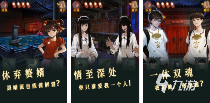 我平時(shí)比較喜歡解謎類型的游戲,那就可以嘗試一下這個(gè)古風(fēng)類型的解謎玩法,在這個(gè)游戲中給玩家設(shè)定的背景是古代關(guān)于婚姻之間的故事,問題的畫風(fēng)設(shè)定非常黑暗,游戲中還有離奇的故事背景呈現(xiàn)給玩家,如果想要體驗(yàn)這個(gè)游戲的話,是需要一定膽量的,主要的玩法就是在游戲中收集線索,解開謎團(tuán),感興趣的玩家可以來參與一下。
