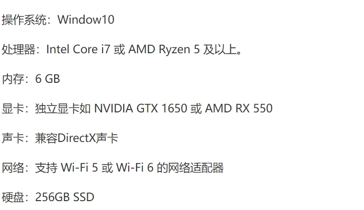 推薦配置需要Windows10或更高版本,處理器 i7或AMD Ryzen 5或更高性能處理器,內(nèi)存雖然與最低配置相同,但8GB的內(nèi)存對于推薦配置來說仍然是一個合理的標準,足以應(yīng)對大多數(shù)游戲場景。顯卡英偉達1650或者AMD RX 550,同時需配備支持DirectX的聲卡,以確保游戲音效的優(yōu)質(zhì)輸出。存儲空間256GB SSD,SSD的讀寫速度遠高于傳統(tǒng)硬盤,能夠顯著減少游戲的加載時間,提升整體體驗。