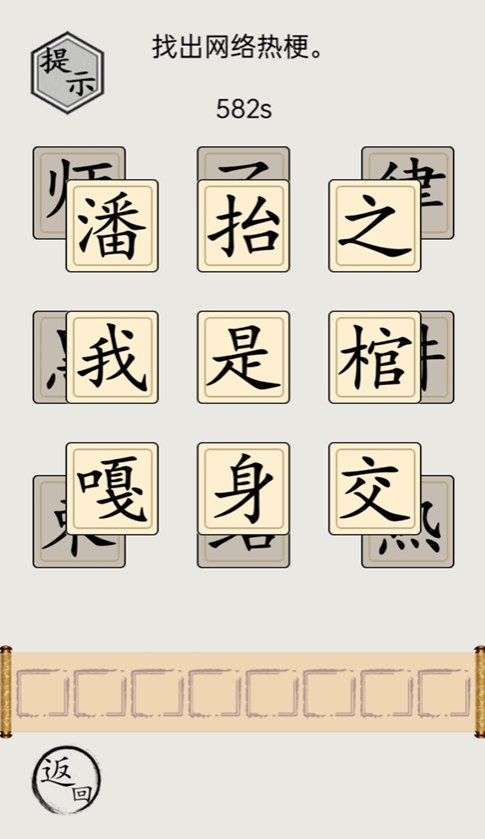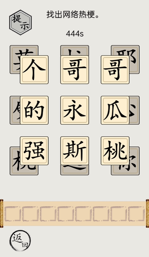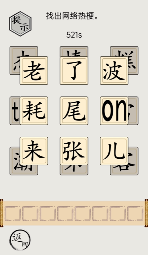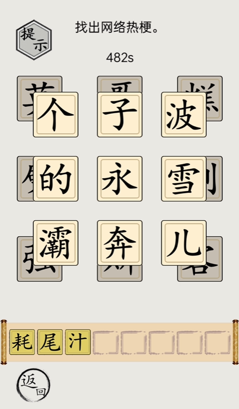 游戲里邊的每一個操作過生都是非常的奇妙,任務(wù)也會變的越來越艱巨,你務(wù)必通過積累的方式讓自己變得越來越強(qiáng)大,才能擁有更多的經(jīng)驗。當(dāng)文字里邊有鬼跟魅出現(xiàn)的時候你可以讓文字石跟皮字進(jìn)行合成的字體去攻破它們構(gòu)筑的圍墻,當(dāng)有門字出現(xiàn)的時候你就可以順利的通關(guān)了。