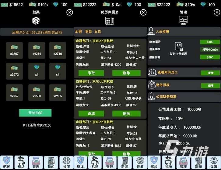 這款手游將帶給玩家全新的、更加有趣的游戲體驗(yàn)!游戲中,玩家需要作為航空大亨對(duì)自己名下的機(jī)場(chǎng)進(jìn)行管理,以保證其成功運(yùn)行。游戲畫面簡(jiǎn)潔,玩家可以很輕松的上手。玩家可以選擇航線和機(jī)場(chǎng),來(lái)查看機(jī)場(chǎng)的運(yùn)行和飛機(jī)的狀態(tài)。同時(shí)還可以通過(guò)管理界面對(duì)員工進(jìn)行招聘和解雇,留下好的員工,解聘偷懶的員工,并且在招聘時(shí)對(duì)于員工的學(xué)歷、能力等有著可視化的體現(xiàn),玩家也可以在選擇時(shí)更加輕松的對(duì)比。其次,為了增加機(jī)場(chǎng)的客流量,在游戲中還有免稅店等可經(jīng)營(yíng)店鋪,玩家可以將空閑商鋪進(jìn)行出租,賺取更多的利潤(rùn)!玩家若是經(jīng)營(yíng)機(jī)場(chǎng)很好,還有可能在新聞板塊上見到自己的機(jī)場(chǎng),十分有成就感!對(duì)游戲感興趣的玩家,快下載游戲成為一代航空大亨吧!