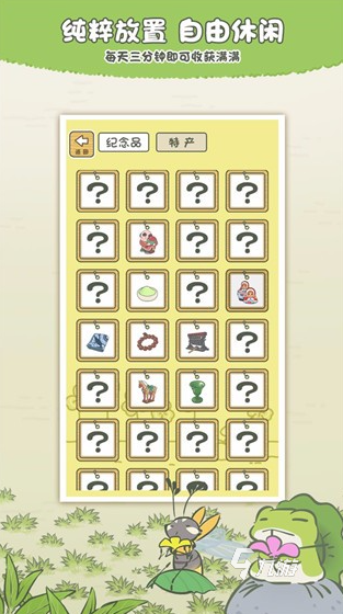這是一款養(yǎng)成類的游戲,風(fēng)格很田園,看起來就讓人感覺很舒服,玩這個游戲大家可以很放松地養(yǎng)蛙,還能感受到我們中國的特色,真的很休閑。游戲里的任務(wù)和玩法都不難,基本上誰都能玩得很開心,游戲里的小青蛙會去看好多漂亮的地方,還能吃到各地的好吃的。玩家要做的就是收集一些道具,這樣小青蛙出門的時候就能用上,挺有意思的。
