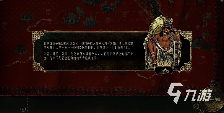 首先就是蘇丹,游戲中的主角,是一個中世界帝國的統(tǒng)治者,睿智強悍同時也很瘋狂、殘忍。