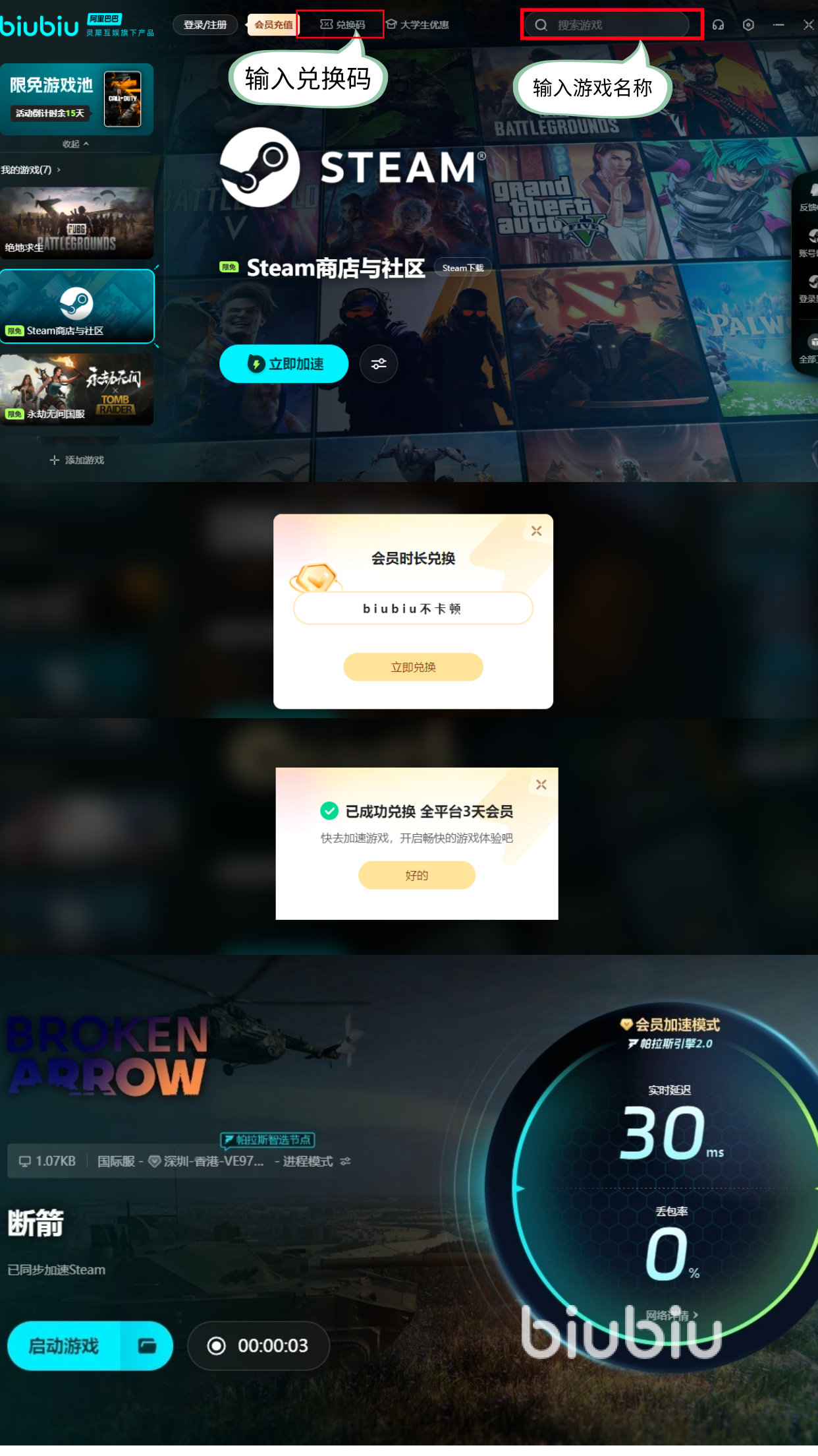 上方給大家推薦了一款好用的加速應(yīng)用,能夠讓玩家擁有穩(wěn)定流暢的游戲環(huán)境,這樣在部署戰(zhàn)略放戰(zhàn)的時(shí)候不用擔(dān)心卡頓,閃退等各種情況而影響各位的布局和戰(zhàn)斗體驗(yàn)。是之前沒用過也沒關(guān)系,現(xiàn)在新用戶登錄即可享受24小時(shí)加速時(shí)間,平臺(tái)每個(gè)用戶還可以用兌換碼【biubiu不卡頓】兌換到手三天加速時(shí)長。若是有的玩家這些福利都享受過了也沒有關(guān)系,在6月17號(hào)到7月4號(hào)期間,平臺(tái)還提供該游戲的限免加速服務(wù),除此之外大家還有機(jī)會(huì)參與活動(dòng)獲取游戲本體獎(jiǎng)勵(lì)。