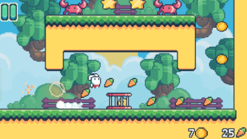 全新升級版本將控制小兔子在神奇的世界當中展開冒險之旅,點擊屏幕,通過虛幻搖桿就能夠控制方向,在冒險的過程中,除了可以收集胡蘿卜,還有很多敵人,玩家通過攻擊敵人的方式完成關(guān)卡。游戲整體的可玩性極高,以像素風為主題,完成冒險之后,將獲得無限成就感。