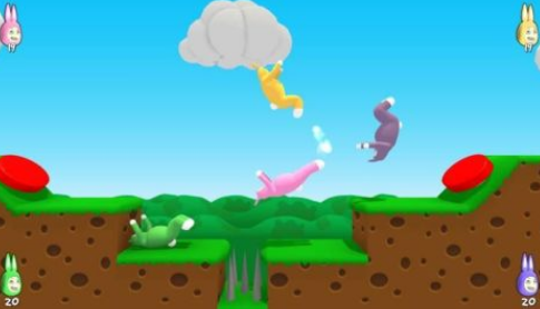 充滿魔性又足夠有趣的雙人聯(lián)機類手游,玩家控制一只兔子,在不同的關(guān)卡當中展開熱血冒險,融合了搞笑以及荒誕元素,有很多非常獨特的夸張動作,比如氣球大戰(zhàn),倒立行走等等,最終形成反差樂趣。在完成關(guān)卡的過程中,一定要及時收集胡蘿卜,這樣才能夠獲得豐厚的獎勵,并兌換皮膚,游戲支持一到四位玩家共同聯(lián)機,無需網(wǎng)絡(luò)設(shè)備,即可參與。