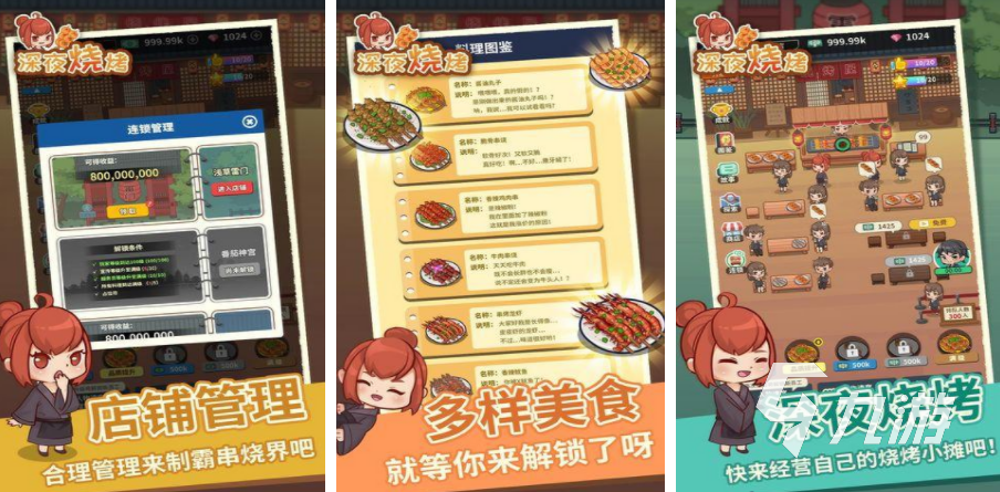 《深夜燒烤》這是一款有意思的經(jīng)營(yíng)類(lèi)手機(jī)游戲,在這里經(jīng)營(yíng)燒烤店就擺地?cái)傄粯雍?jiǎn)單,需要你費(fèi)盡心思的運(yùn)營(yíng)好這家燒烤店,當(dāng)然還有一些客人來(lái)?yè)v亂,你要如何把握好尺寸就得看你的功夫了~