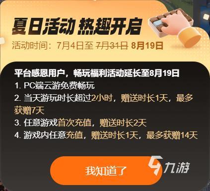 此外,九游云游戲平臺還不僅提供了多項優(yōu)惠措施以吸引新用戶。首次登錄的用戶將獲得7天的免費試用時長;每日登錄游戲還可額外獲得20分鐘的游玩時間;而任何游戲的首次充值,用戶將額外獲得2天的游戲時長。