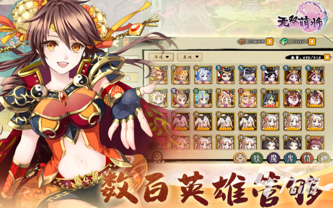 《無雙萌將》同樣是有很多萌妹子的冒險(xiǎn)類的手游,也是放置類型的,玩家們可以在游戲里收集到很多的妹子武將們,這些妹子們的屬性是不同的,玩家們可以將這款游戲當(dāng)個(gè)收集養(yǎng)成類的妹子手游,玩家可以將自己手下的美女們組成一個(gè)戰(zhàn)斗,然后跟游戲里的壞人們一起戰(zhàn)斗,是一款妹子英雄眾多的放置游戲。