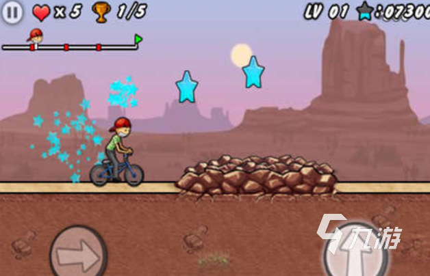 本作是款畫面呈現(xiàn)歐美卡通風(fēng)的單車主題橫版跑酷手游,一邊駕駛單車一邊搜集小星星的玩法很特殊,地圖設(shè)定層次感不錯(cuò)且單車動(dòng)作也十分靈活,小星星也是游戲中通用貨幣可以兌換其他道具,一共只有兩個(gè)操作按鍵讓單車可以流暢前進(jìn),游戲物理體系完善給人帶來的騎單車體驗(yàn)真實(shí)性爆表。