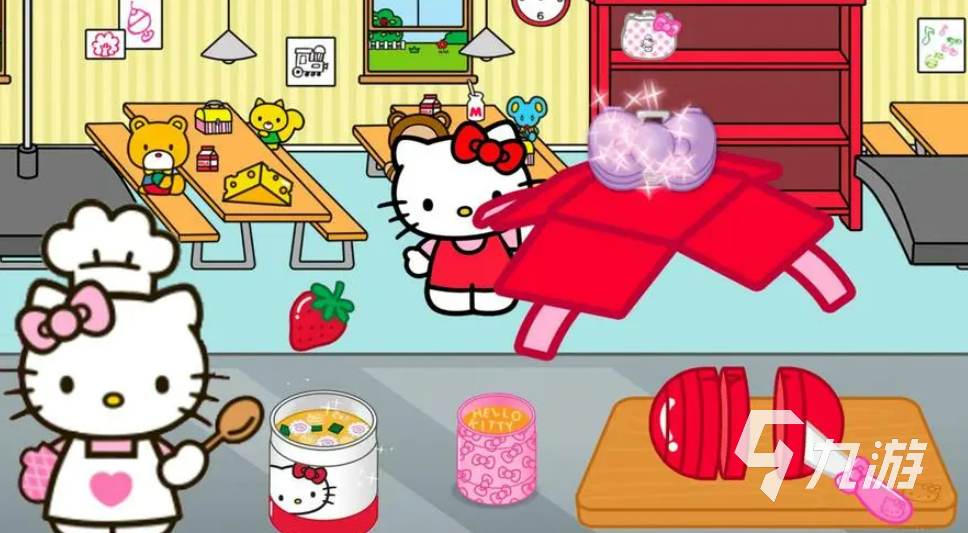 這款游戲里的凱蒂貓是一名非常厲害的廚師,它會(huì)用各種魔法烹飪美味的菜肴。玩家在游戲里的任務(wù)就是給凱蒂貓準(zhǔn)備各種食材,小小的凱蒂貓會(huì)根據(jù)食材的不同烹飪好吃的食物,這款游戲的設(shè)定非常像是過家家游戲,不會(huì)烹飪的小伙伴可以在游戲里練習(xí)做菜,小凱蒂貓就是你最好的老師。本作有許多可以互動(dòng)的場(chǎng)景,你可以與白色的凱蒂貓一起合作烹飪美食。