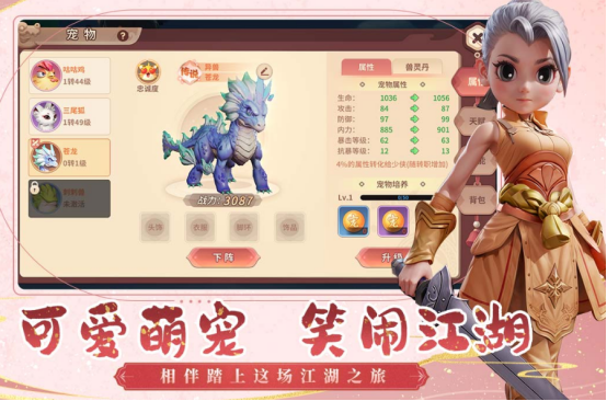 以q版為主題的武俠mmorpg手游,擁有著相當(dāng)清晰又明亮的3d美術(shù)畫(huà)風(fēng),將獨(dú)特的武俠世界完美呈現(xiàn),另外也有相當(dāng)精美的光影動(dòng)態(tài)效果。晝夜交替以及四季變幻江湖場(chǎng)景都展現(xiàn)的淋漓盡致,豐富的職業(yè)體系,除了有五大經(jīng)典職業(yè)之外,又加入醫(yī)師具備治療以及輔助功能,在團(tuán)隊(duì)作戰(zhàn)時(shí)有著極大的作用。融入了休閑玩法,比如時(shí)裝搭配溫泉釣魚(yú)等。