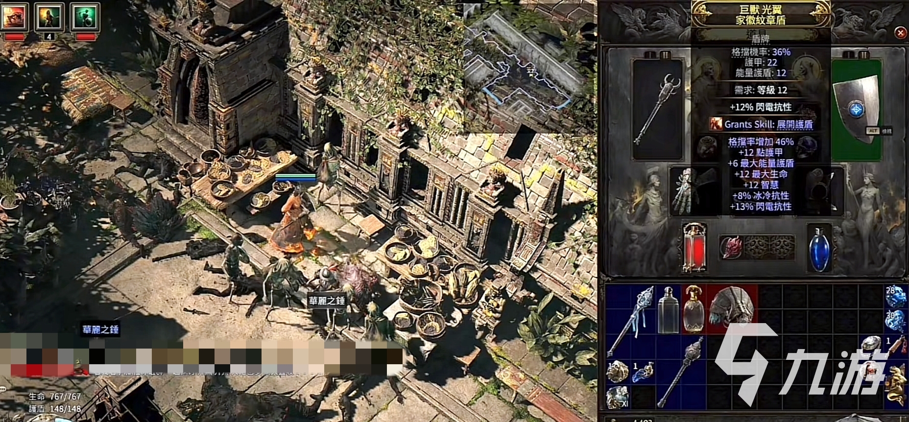 該職業(yè)的武器盡量要向帶召喚物技能的靠攏,這里所選擇的是惡行之曲法杖,所有的友軍都能增加點(diǎn)傷的buff,一定要上一個(gè)盾牌可以選擇巨獸光翼家輝紋章盾,選擇需求少,然后格擋概率高的;現(xiàn)在刷怪的時(shí)候很容易被卡腳,滾不出去的時(shí)候就只能通過格擋來免傷。