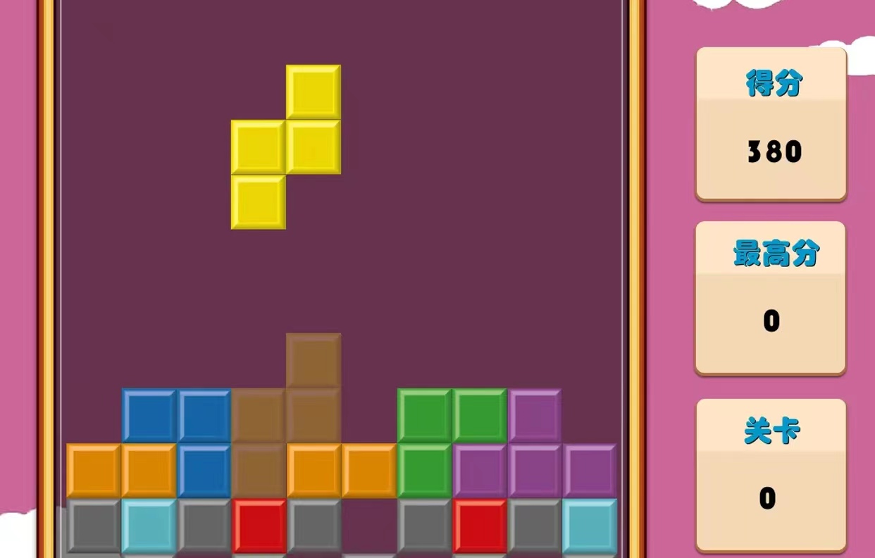 在這款游戲中,玩家可以通過調(diào)整掉落的立方體來調(diào)整自己的落點(diǎn),一塊塊大小不一的方塊從螢幕上依次掉落,玩家可以根據(jù)這些方塊的方位和方位,在螢幕的下方形成一條或多條線。這些完全的條子會(huì)立刻消失,為新的板子留出足夠的空間,而玩家也會(huì)獲得相應(yīng)的積分。未清除的立方體還在不停地累積,當(dāng)它們達(dá)到最上方時(shí),玩家就會(huì)認(rèn)輸,游戲也就結(jié)束了。