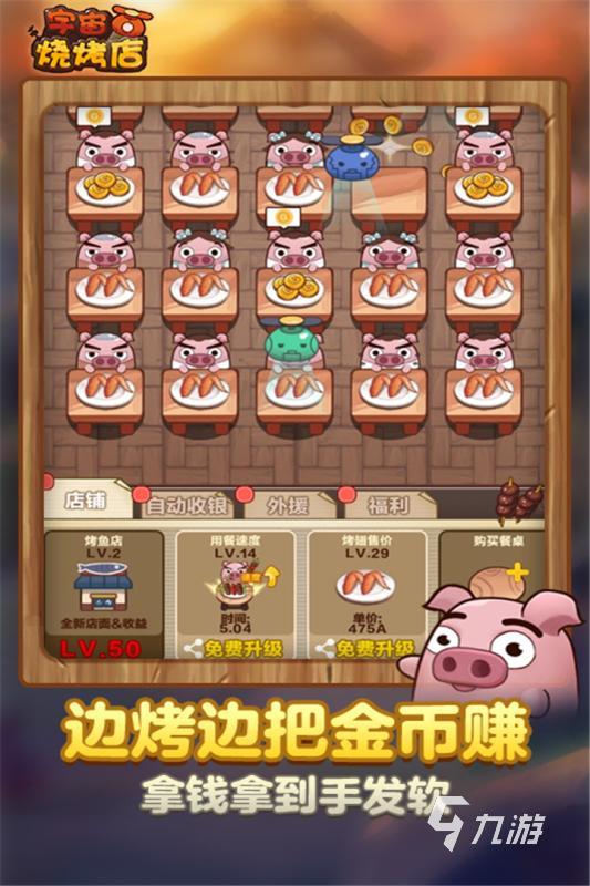宇宙燒烤店這是一款以燒烤攤老板為視角的模擬經(jīng)營游戲,游戲畫面卡通。玩家們需要在游戲中升級菜品以及解鎖廚師等一系列來吸引更多的顧客,用賺到的錢來擴大燒烤店的規(guī)模。