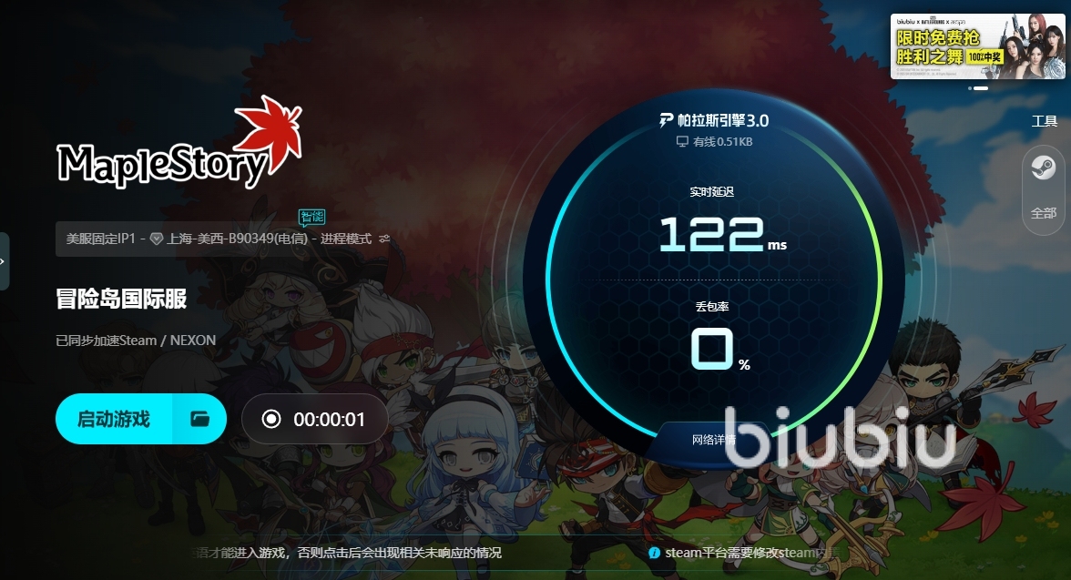 總結(jié)一下,無論冒險(xiǎn)島閃退是什么原因,大多數(shù)情況下就是網(wǎng)絡(luò)造成的,畢竟無論是文件丟失還是硬盤空間不足,對大多數(shù)玩家來說都是小概率時(shí)間,另外,使用biubiu加速器,其所解決的可不僅是閃退,常見的卡頓,掉幀延遲等問題同樣可以輕松解決。