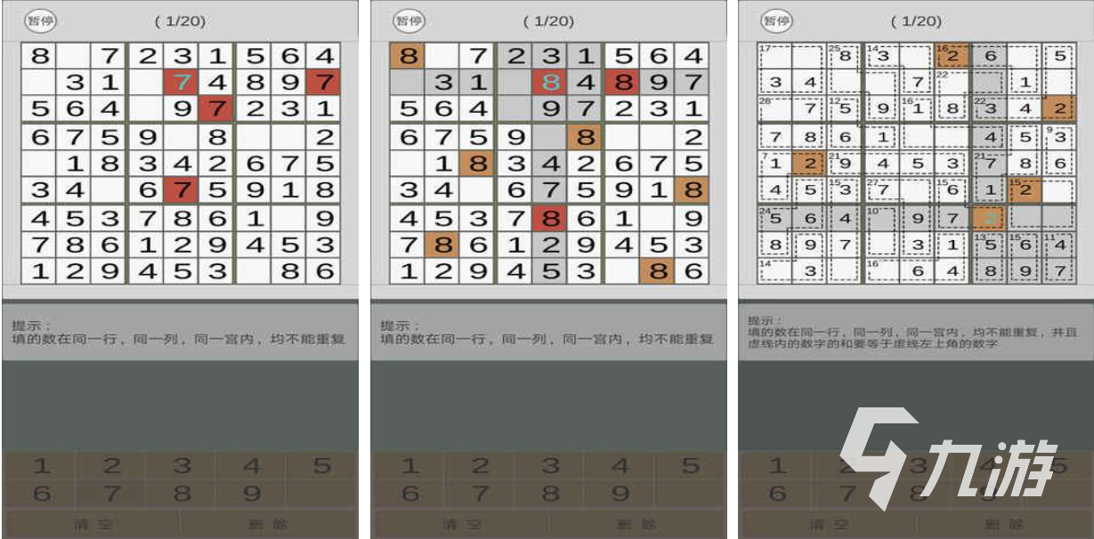 數(shù)獨(dú)是一種典型的尋找數(shù)字規(guī)律的益智游戲,數(shù)獨(dú)九宮就是一款可以單機(jī)運(yùn)行的手游,簡(jiǎn)約的游戲畫面和簡(jiǎn)單的找規(guī)律玩法都讓人贊不絕口。這款數(shù)獨(dú)游戲難度不高而且還有詳細(xì)教程,短時(shí)間內(nèi)就能讓小白們掌握數(shù)獨(dú)的玩法,靠自己的觀察力和智力過(guò)關(guān)的過(guò)程非常有成就感,經(jīng)常玩這款數(shù)獨(dú)游戲還可以大大提高自己智商哦。