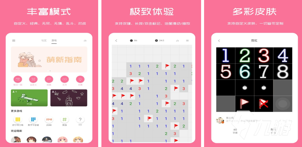 這款多人聯(lián)機(jī)的掃雷游戲也是靠找規(guī)律才能玩的,你需要觀察屏幕里的每個(gè)數(shù)字以尋找出地雷的位置,然后插上小紅旗占領(lǐng)那個(gè)空格。掃雷聯(lián)萌目前支持雙人競(jìng)技,兩個(gè)玩家可以比賽看看誰(shuí)能最新找出地雷的位置。這款掃雷手游還有著更換主題的設(shè)定,鮮艷多彩的背景畫面會(huì)給你帶來(lái)眼前一亮的感覺(jué),喜歡聯(lián)機(jī)掃雷游戲的朋友不可錯(cuò)過(guò)。
