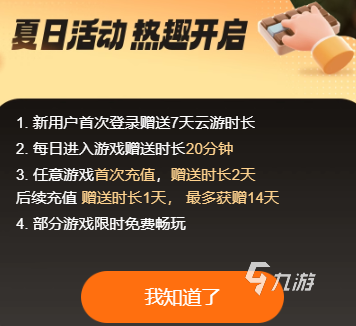而且現(xiàn)階段九游為了讓大家能愉快暢玩其平臺(tái)上的各大云游戲,也是推出了不少的福利可以領(lǐng)取,其一就是贈(zèng)送新用戶(hù)7天的云玩時(shí)長(zhǎng),其二就是日常在平臺(tái)內(nèi)登錄游戲也是有相應(yīng)時(shí)長(zhǎng)贈(zèng)送,每天有20分鐘的體驗(yàn)時(shí)長(zhǎng)可以獲得,其三還會(huì)給到大家首充和后續(xù)充值時(shí)長(zhǎng)返利,可以說(shuō)足夠大家在該平臺(tái)上云玩體驗(yàn)我的勇者這款游戲了。
