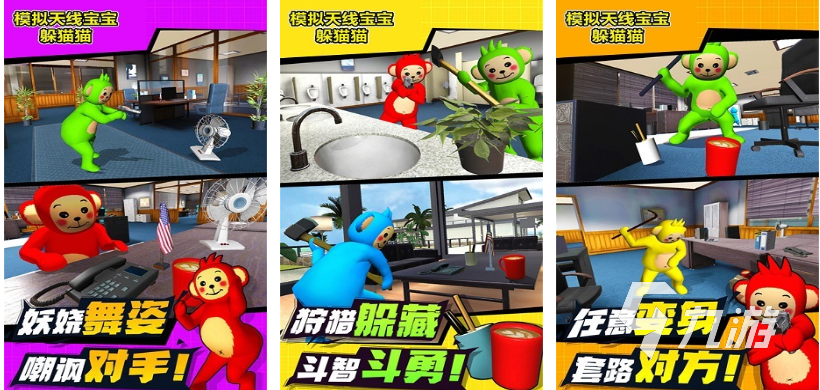 本作是唯一加入了天線寶寶IP的競技類躲藏游戲,躲藏者可變身成不同道具嘗試躲避天線寶寶,扮演天線寶寶的玩家可使用一些特殊武器完成任務(wù),超級刺激的躲藏尋找過程給人心跳加快的感覺,天線寶寶的造型還原度極高有著莫名的喜感,操作也更為靈活提供的躲藏互動感覺更為舒適,各位躲貓貓高手不妨在本作中與天線寶寶斗智斗勇。