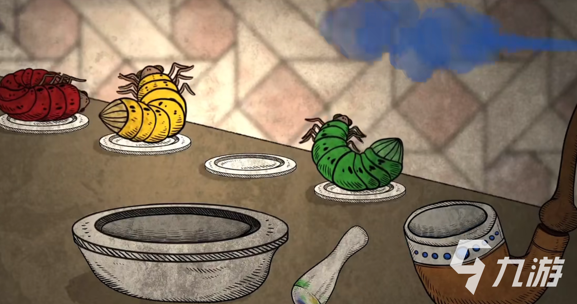 再高一點(diǎn)的解密就是拼團(tuán)了,按照照片中的圖案給角色拼一個(gè)差不多的圖案,難度也是一般,還有往煙管里放入奇形怪狀的蟲子,會(huì)釋放不同顏色的煙。