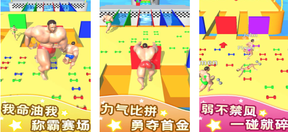 肌肉甜心是款令大家忍俊不禁的多人互動(dòng)比賽手游,采用了收集強(qiáng)化+競技類的基礎(chǔ)玩法,剛開局大家都會(huì)扮演骨瘦如柴的健身選手,需要通過后續(xù)不斷收集一些健身道具進(jìn)行健身PK,從弱小的角色化身成肌肉壯漢的過程相當(dāng)硬核,爆笑不斷的競技流程也是這款甜心游戲的亮點(diǎn),比拼力量和運(yùn)氣的特殊競技機(jī)制也挺完善。
