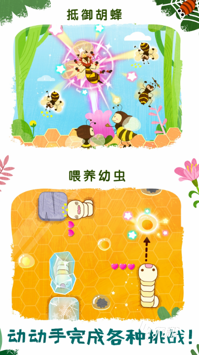 這是一款專為小朋友設(shè)計(jì)的趣味游戲,它巧妙地將昆蟲知識融入其中,讓孩子們在游戲中遇見形態(tài)各異的昆蟲,并了解它們的獨(dú)特作用與習(xí)性。玩家可以化身小小守護(hù)者,通過完成一系列任務(wù)助力幼蟲茁壯成長,或是化身勤勞小工,參與糧食搬運(yùn)與蜂巢保衛(wèi)戰(zhàn)。游戲畫面溫馨可愛,更有趣味換裝環(huán)節(jié),讓孩子們親手為蜜蜂女王打造百變造型,全方位感受昆蟲世界的奇妙一天。