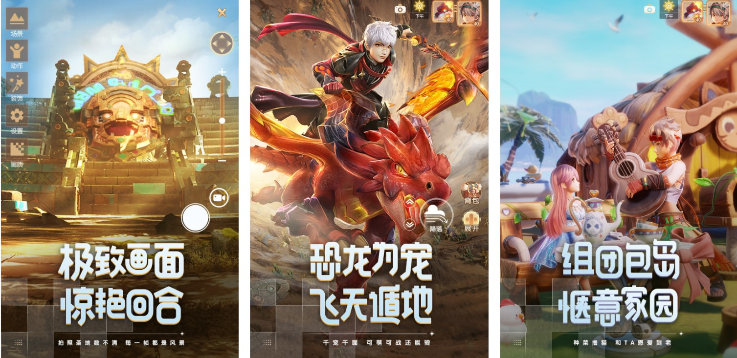 極致的游戲畫(huà)面,帶你體驗(yàn)驚艷的回合玩法。這里哪怕是巨型恐龍,也可以馴化作為你的寵物,它會(huì)帶你飛天遁地,看遍這個(gè)世界的美好。你也能在這里搭建自己的家園,和你的朋友們買(mǎi)下一座小島,享受你們快樂(lè)的生活。游戲支持pvp對(duì)決,在三維空間下,體驗(yàn)回合制的玩法,和來(lái)自不同道理的強(qiáng)者進(jìn)行切磋較量,還有更多全新的神獸登場(chǎng),增強(qiáng)你的戰(zhàn)斗力哦。