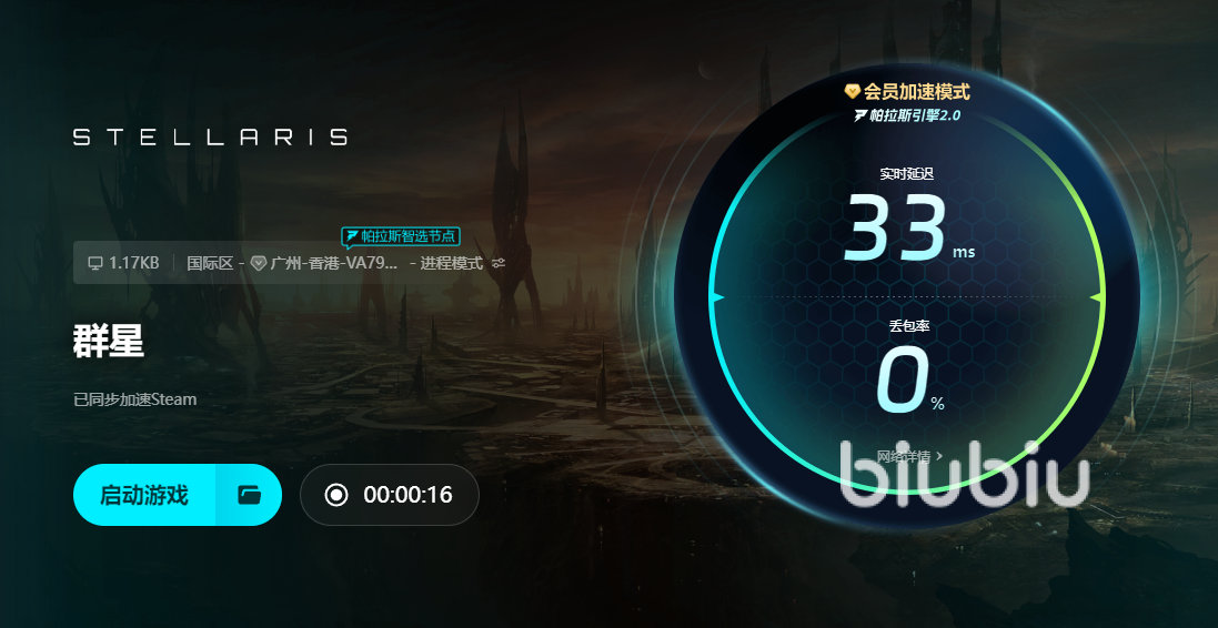 許多玩家誤以為《群星》作為單機(jī)為主的策略游戲,不會(huì)受到網(wǎng)絡(luò)環(huán)境的影響,但實(shí)際上,在讀取存檔時(shí),游戲通常會(huì)啟動(dòng)自動(dòng)同步機(jī)制,包括Steam云存檔同步、在線成就更新以及啟動(dòng)時(shí)的驗(yàn)證流程,一旦網(wǎng)絡(luò)波動(dòng)或連接不暢,這些關(guān)鍵過程就會(huì)出錯(cuò),進(jìn)而導(dǎo)致游戲崩潰或閃退。針對(duì)這一問題,biubiu加速器的優(yōu)勢(shì)顯得尤為突出。無論是在進(jìn)行云存檔讀取還是其他需要網(wǎng)絡(luò)介入的環(huán)節(jié),biubiu都能提供穩(wěn)定的網(wǎng)絡(luò)通道,保障數(shù)據(jù)傳輸?shù)耐暾院瓦B續(xù)性,幫助玩家順利進(jìn)入游戲,遠(yuǎn)離因網(wǎng)絡(luò)異常帶來的讀檔閃退困擾。