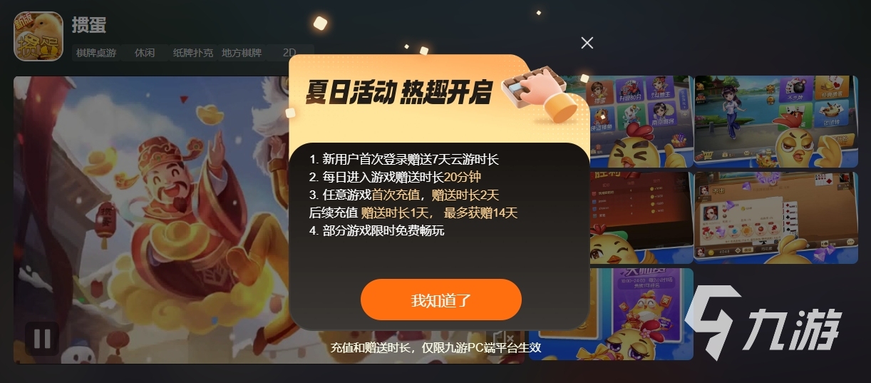 現(xiàn)如今,各位去使用九游平臺時,更是有著多重福利贈送,其中作為平臺的新用戶,在大家首次去進行登陸時,便能夠立即解鎖7天的免費試用,并且后續(xù)每天進入游戲更是能有20分鐘的時長贈送,且對于任游任意的游戲首充,平臺都會額外贈送大家2天的時長,讓小伙伴們到時可去盡情的暢玩。