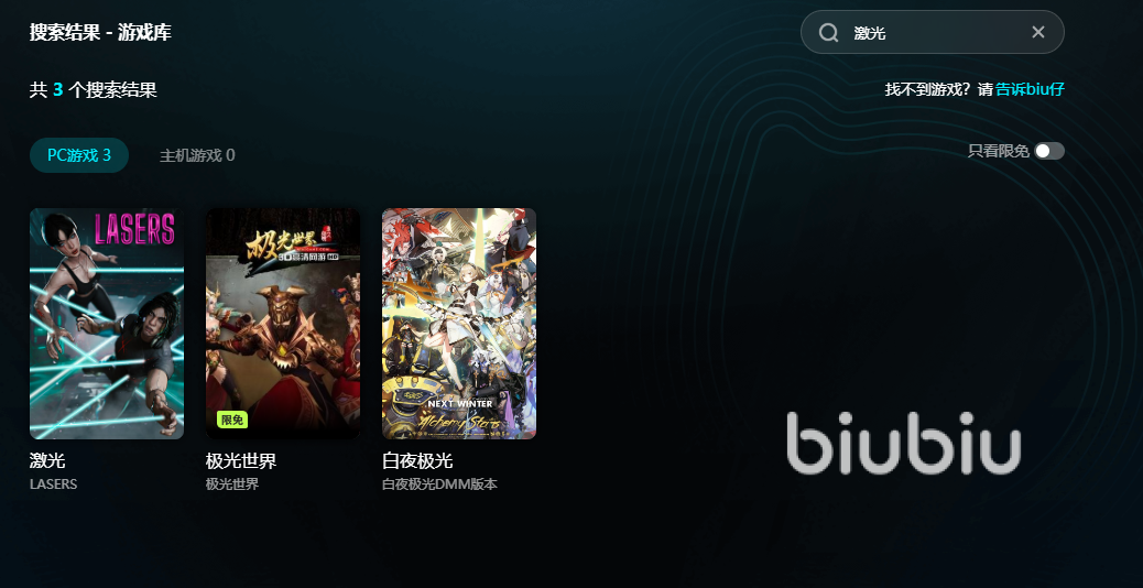 激光加速器推薦的就是biubiu,如果小伙伴們感覺不錯的話,可以直接點擊上方鏈接下載,該平臺不僅好用,還收集了超多的游戲,后續(xù)小伙伴們想玩其他作品,照樣可以用這個平臺,只在平臺內搜索自己要玩的作品名稱,然后找到正確的登錄專區(qū)加速即可。