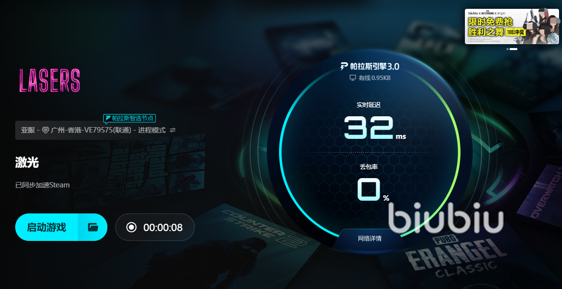 從而biubiu的技術也是很強的,跟隨最新游戲不斷發(fā)展,提升引擎技術,給大家提供穩(wěn)定流暢的加速環(huán)境,最近更是成功升級,推出帕拉斯引擎3.0,讓全體用戶和Aixleft一起感受這個實力平臺。大家覺得看起來不錯的話不妨下載試試,反正前期不需要花錢,也不用擔心自己會上當受騙。