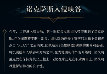 這次的更新主題就是諾克薩斯入侵峽谷,所以產(chǎn)生了一系列的改變,尤其是外觀。在25.S1.1版本中,史詩(shī)級(jí)野怪厄塔汗是來(lái)到了峽谷,并且整個(gè)地圖的外觀也是進(jìn)行了升級(jí)了,商店也有改變,很濃厚的諾克薩斯風(fēng)格。